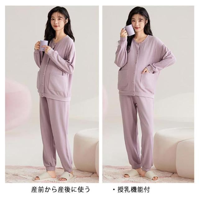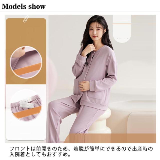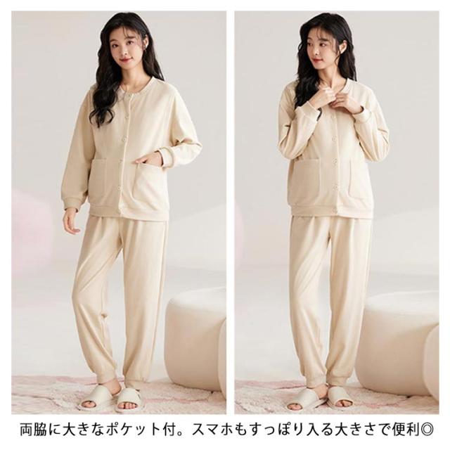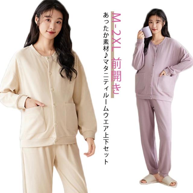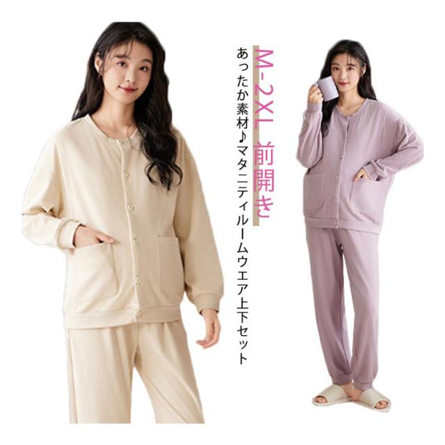 マタニティ あったか ポケットあり ルームウェア 上下セット 前開き マタニティ 長ズボン 入院 授乳対応 授乳服 出産 長袖 準備 産前 産後