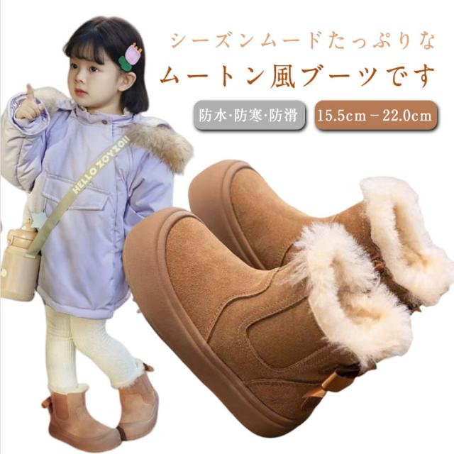 ボアブーツ 女の子 リボン付き ムートンブーツ サイドゴアブーツ ムートンブーツ 裏起毛 ボア ショートブーツ 厚底 極暖 ファー サイドジップ 軽量 あったか 防水 撥水 防寒 保温 滑らない キッズ 子供 シューズ 靴 秋冬 通学 保育園 カジュアル かわいい ベージュ