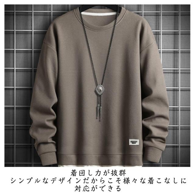 ワッフル トレーナー メンズ 重ね着風 スウェット ワッフル編み クルーネック オーバーサイズ 長袖 無地 おしゃれ ゆったり スポーツ トップス 着回し 韓国ファッション ストリート 秋服 春服