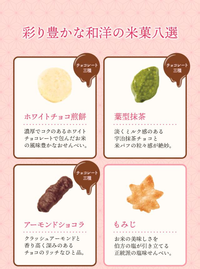 多彩な8種の米菓をお愉しみください。
