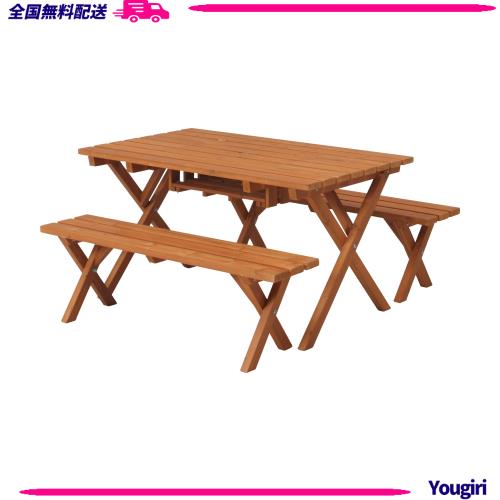 不二貿易 ガーデン 杉材 バーベキューテーブル&ベンチセット コンロスペース付き ナチュラル 81761