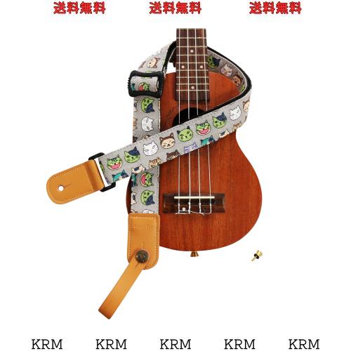 [MUSIC FIRST] 元のデザ 可愛い 漫画「スイカ猫」ソフトコットン&本革製ウクレレストラップウクレレショルダーストラップ (ギフトとして