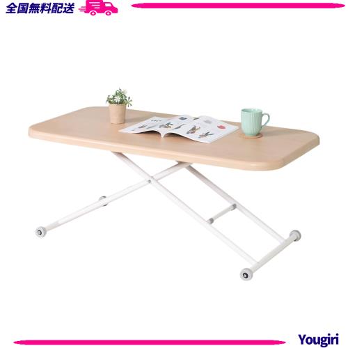 ◆商品名:不二貿易(Fujiboeki) 昇降式テーブル センターテーブル 幅120~125×奥行60×高さ12~70cm ナチュラル ガス圧 無段階調整 キャスター付き