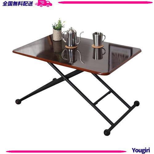 その時の用途合わせていろいろな場面で活躍するテーブルです。在宅勤務にもピッタリ。仕事が終わったらローテーブルにしてくつろぐこともできます。 高さ調節ができ、1台で幅広く使用できる昇降テーブルです。 レバーで無段階の高さ調節が可能です。 高く調節すると作業机やダイニングテーブル、低く調節するとローテーブルなど、様々な用途で使用できます。 収納時は一番低くして、ソファの下などに場所を取らずに収納できます。 キャスター付きなので昇降や移動が楽にできます。 【天板を下げるとき】 レバーを握り、天板の中央よりやや外側に手を当てます。 天板に体重をかけ、斜め下方向に押してください。 レバー側は固定車輪、反対側は稼働車輪になっています。【天板を上げるとき】 レバーを握り、天板をゆっくりと持ち上げます。 フレームを足で抑えるとスムーズに上がります。 ※本製品に使用しているガスシリンダーは、長期間動作を行わない場合、固まってしまい昇降がしずらくなる場合がございますので、定期的に商品を昇降させてください。