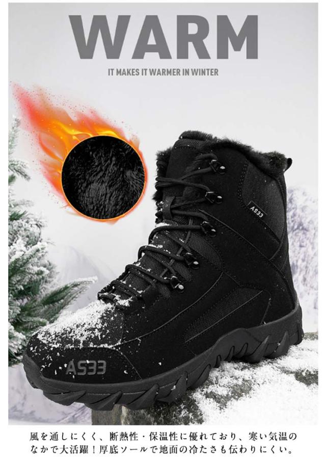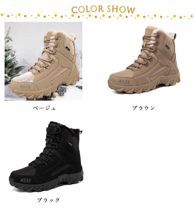 防水 滑らない メンズ スノーブーツ ウインターブーツ 防滑 ハイカット レースアップ ブーツ スノーブーツ スノーシューズ ショートブーツ 防寒靴 雪靴 トレッキングシューズ 厚底 防寒 アウトドア 登山 軽量 大きいサイズ ワークブーツ 黒 ベージュ ブラウン