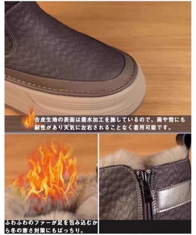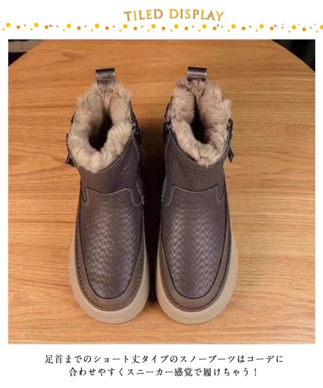 | 雨の日や寒い雪の日でも快適に履ける おしゃれな撥水加工ファスナー付スノーブーツ 合皮生地の表面は撥水加工を施しているので、雨や雪にも耐性があり天気に左右されることなく着用可能です。 ふわふわのファーが足を包み込むから冬の寒さ対策にもばっちり。 約5cmの厚底でスタイルアップも。 足首までのショート丈タイプのスノーブーツはコーデに合わせやすくスニーカー感覚で履けちゃう! 通学通勤や旅行、長時間外を歩く時も安心して選べる安心感♪ | |