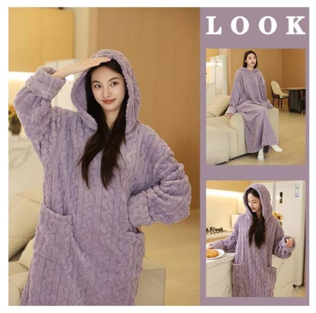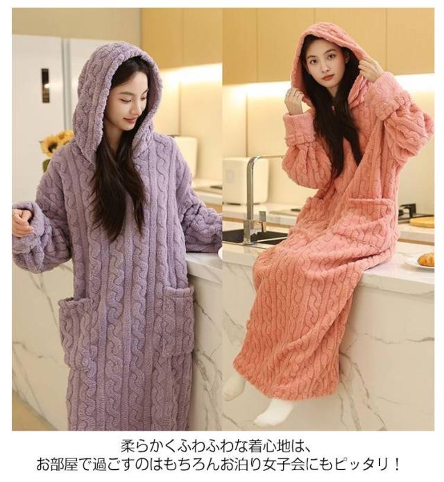 パジャマ ルームウェア 長袖 部屋着 パジャマ 寝間着 フード付き ポケット付き 着る毛布 ナイトウェア フリース ルームウェア 寝巻き ルームワンピース あったか ワンピース 暖かい 産前 産後 春 秋