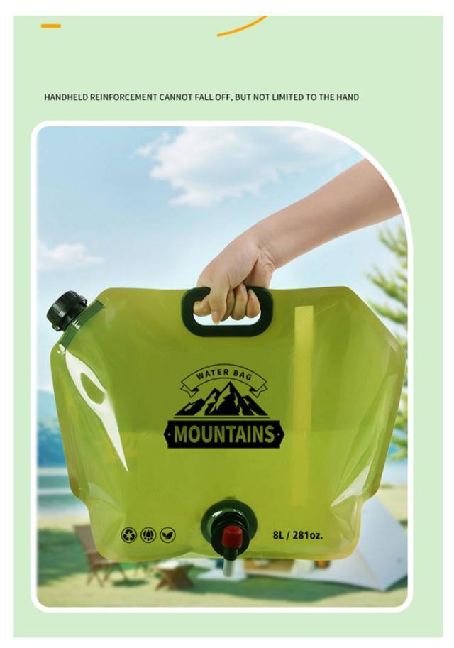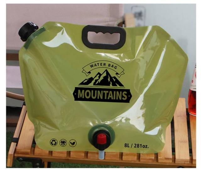 | ・折りたたみウォータージャグ ・容量は8Lで、袋タイプですが、底にマチが付いているのでしっかりと自立します。 ・耐熱は60度まで可能で、炎天下での使用も問題なく、水タンクの破損や変形しにくい仕様です。 ・コンパクトに収納できて携帯性に優れているので、キャンプ以外の他のアウトドア時にも使えて便利です。 | |