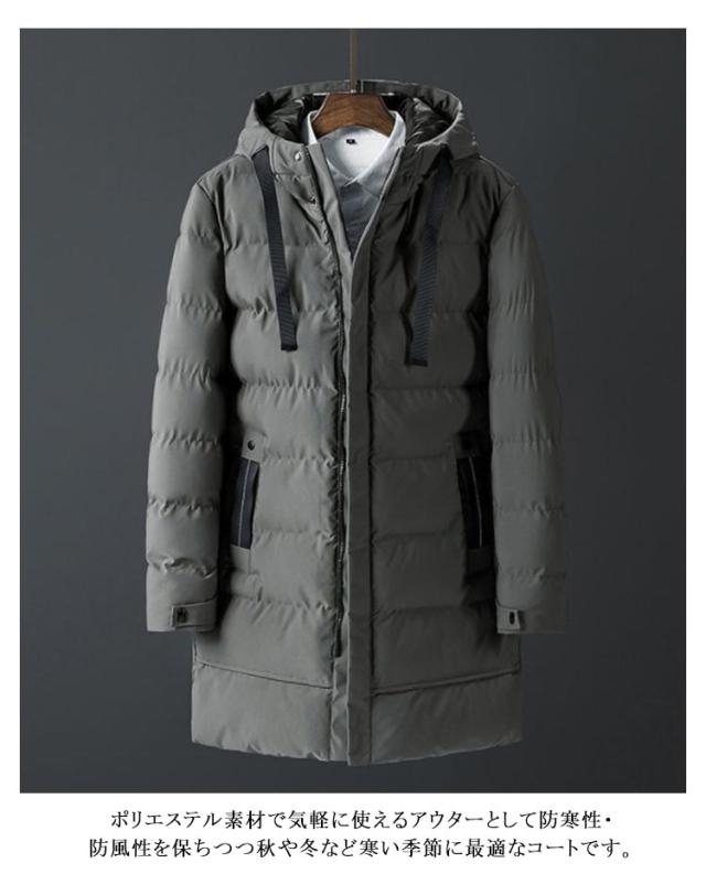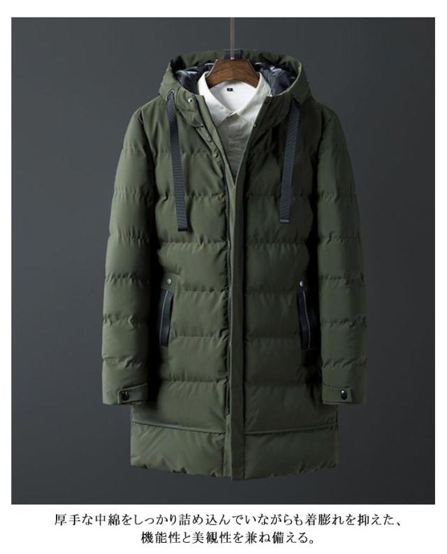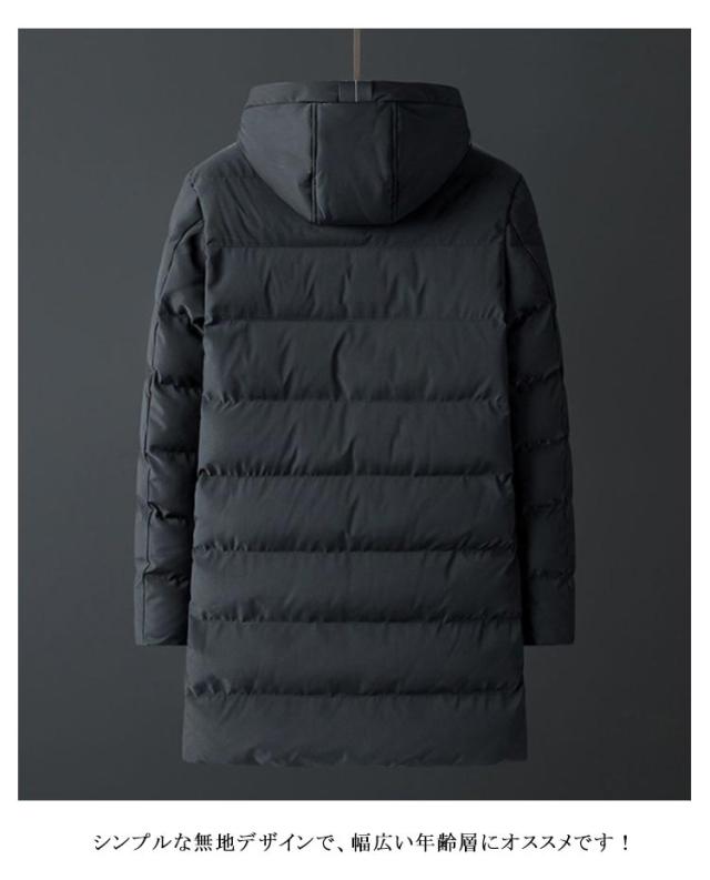 | M-7XL!寒い冬の防寒対策として活用するメンズ中綿コート。 膝までのロング丈で、ビジネスからカジュアルまでに使いやすい中綿コートです。 ポリエステル素材で気軽に使えるアウターとして防寒性・防風性を保ちつつ秋や冬など寒い季節に最適なコートです。 厚手な中綿をしっかり詰め込んでいながらも着膨れを抑えた、機能性と美観性を兼ね備える。 無地のシンプルデザイン、軽量でさわり心地、着心地もよく、通勤、通学、デート、スポーツなど様々な場面で使える一枚でオシャレに決まるオススメアイテムです! シンプルな無地デザインで、幅広い年齢層にオススメです! | |
