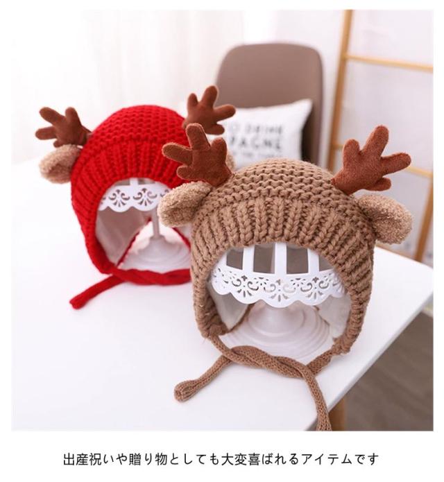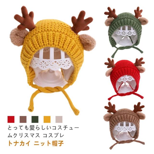 キッズ 冬 耳付き 赤ちゃん トナカイ 子供 クリスマスイベンド プレゼント 耳 ニット帽 ニット帽子 ニットキャップ あたたかい 耳付き コーデ 帽子 ギフト 寒さ対策 お出かけ 可愛い 幼稚園 保育園 出産祝い レッド コーヒー グリーン イエロー