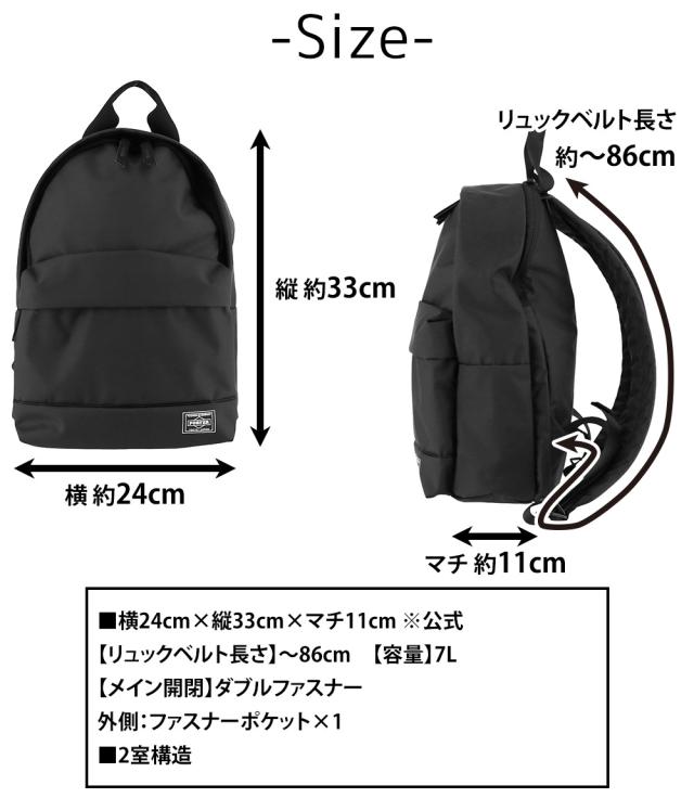 | サイズ(約) ※当店実寸値 | 公式サイズ 横24cm×縦33cm×マチ11cm 【リュックベルト】~86cm 【容量】7L | ||