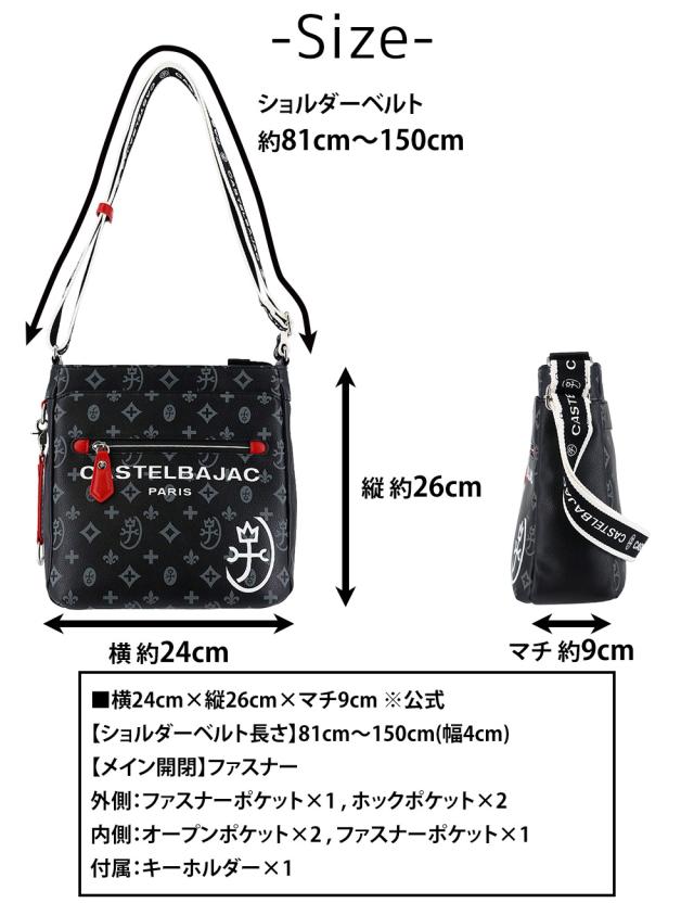| サイズ(約) ※当店実寸値 | 公式サイズ 横24cm×縦26cm×マチ9cm 【ショルダーベルト】81〜150cm(幅4cm) | ||
