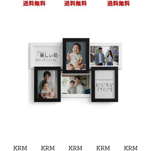 フォトフレーム L判 多面 卓上 壁掛け 木製 ガラス 人気 おしゃれ 写真立て 額縁 ハガキ ポストカード アートワーク 写真フレーム 複数枚 縦 横 誕生日 記念日 新築祝い プレゼント(黒-白 6枚)