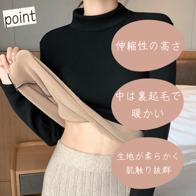 ・特徴:寒い季節に活躍する裏起毛長袖インナー、生地は柔らかく伸縮性が高い素材を採用し、肌ざわりがよく、防寒性能が高いです。
