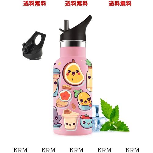 ストロー付き水筒 350ml 子供用 可愛いイラスト 二重構造 304ステンレス製 保温・保冷対応 漏れ防止 軽量 食洗機・炭酸・保温保冷対応 漏