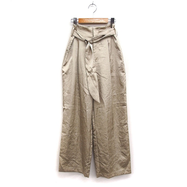 【中古】ローズバッド ROSE BUD ワンタック ハイウエスト ワイドパンツ 無地 光沢 サテン F ベージュ /FT13 レディース