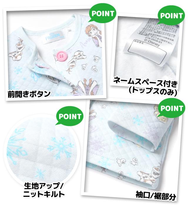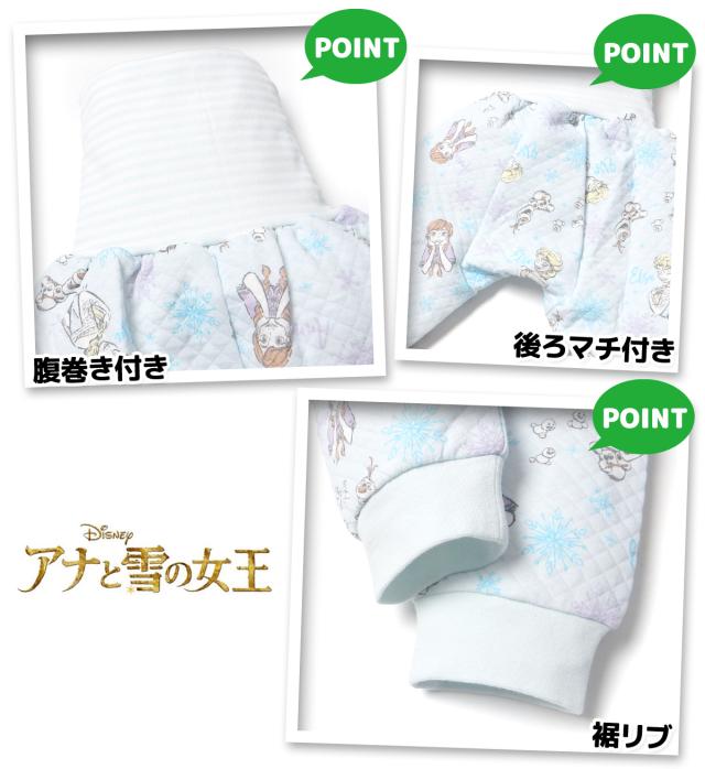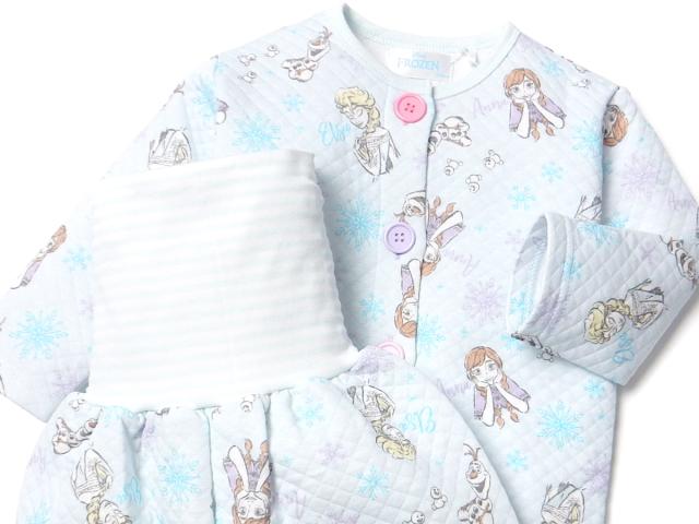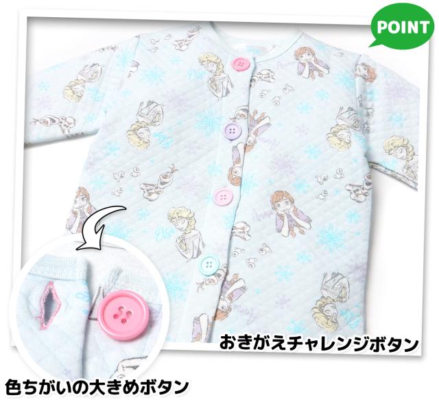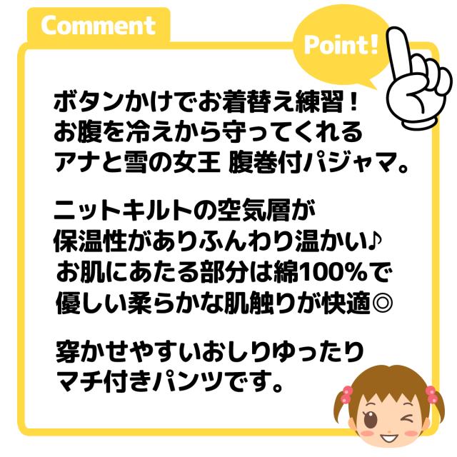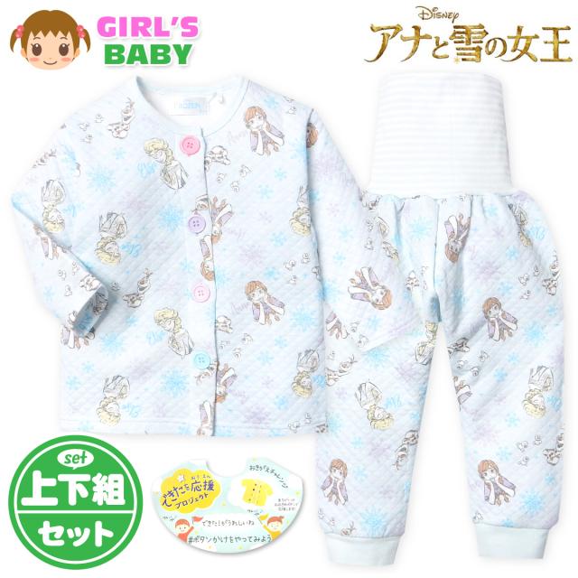【送料無料】女児 ベビー お着替え練習 長袖 パジャマ Disney ディズニー アナと雪の女王 ニットキルト 腹巻付 あったか 保温 肌側綿100% 上下組 女の子 80cm 90cm 95cm iw-1217【メール便対応】