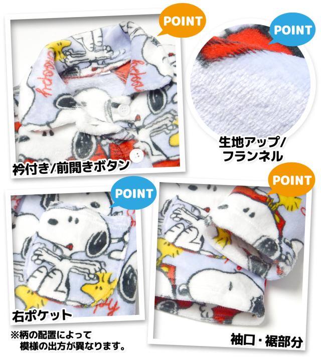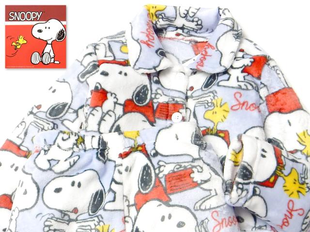 【送料無料】女児 キッズ ジュニア フランネル素材 長袖 パジャマ スヌーピー 上下組 あったか素材 保温性 前開き 総柄 子供服 女の子 130cm 140cm 150cm yg-2750d-lv【メール便対応】