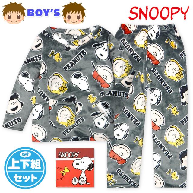【送料無料】男児 キッズ ジュニア フランネル素材 長袖 パジャマ スヌーピー 上下組 あったか素材 保温性 かぶり 総柄 子供服 男の子 130cm 140cm 150cm yg-2751h-cc【メール便対応】