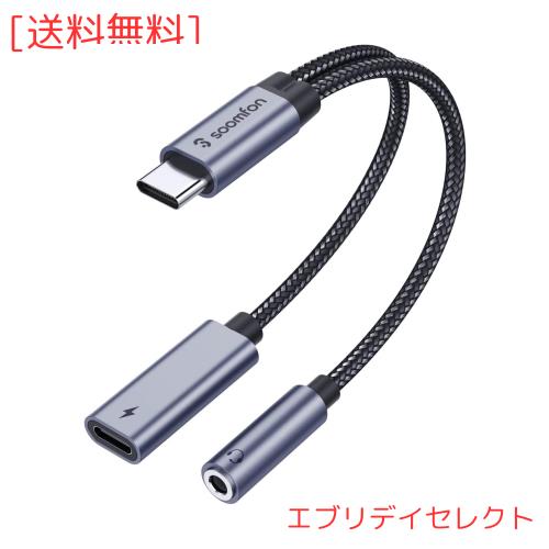 タイプc イヤホンジャック変換器 - SOOMFON 2-IN-1 USB C イヤホンジャック 60W PD急速充電 Type-C イヤホン 3.5mm オーディオアダプタ