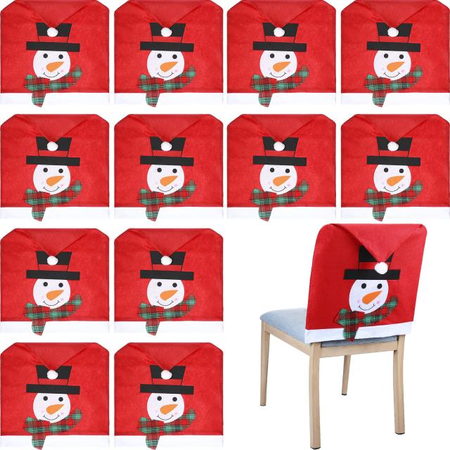 雪だるまのクリスマス椅子カバー 12枚 装飾 クリスマス ダイニングチェア スリップカバー 雪だるま クリスマス椅子カバー 雪だるま 椅子バックカバー