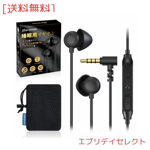 寝ホン Parasom 睡眠用イヤホン カナル型 寝ながらイヤホン 有線イヤホン 超軽量 超小型 装着快適 高遮音性 柔軟性高 リモコン/マイク付