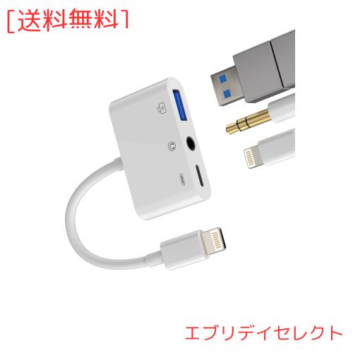 アップルライトニング to 3.5mm イヤホン ジャック変換アダプタ(3 in 1)USB-A 3.0 OTGアダプター同時Lightningケーブル急速充電 カメラ