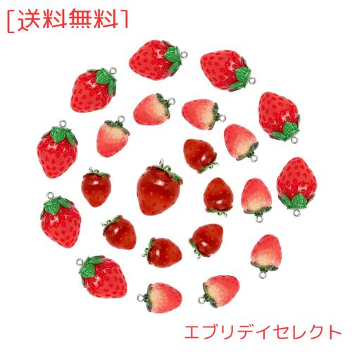 SUNNYCLUE 24個3種 イチゴ チャーム フルーツ チャーム レジン チャーム 和風 可愛い チャーム 果物 パーツ 苺 ピアス い