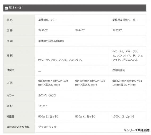 室外機ルーバー ホワイト (室外機用) SL5057 |b03