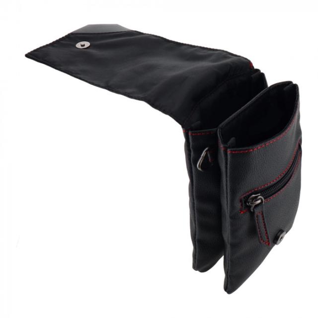 商品詳細:簡易工具や携帯電話などの収納に便利です。スマホ2台持ちに対応できます。 生産国:中国 商品サイズ:H195×W110×D26mm 重量:120g 仕様:カラー:ブラック 付属品:カラビナ