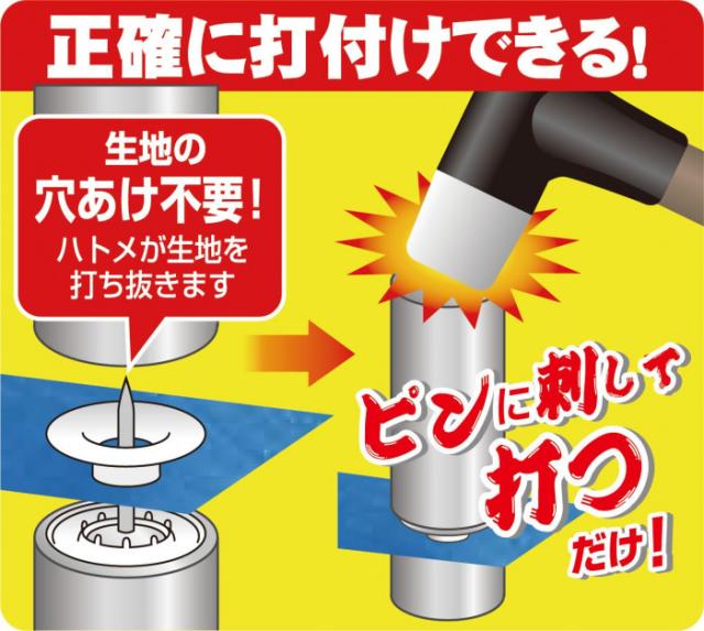 商品詳細:生地の穴あけ不要でハトメが生地を打ち抜きます。丈夫で変形しにくく、サビないのも特徴です。穴の補強、補修、小物やアウトドアーグッズにご活用ください。 生産国:中国 素材・材質:真鍮 商品サイズ:ハトメ穴径:約4.3mm