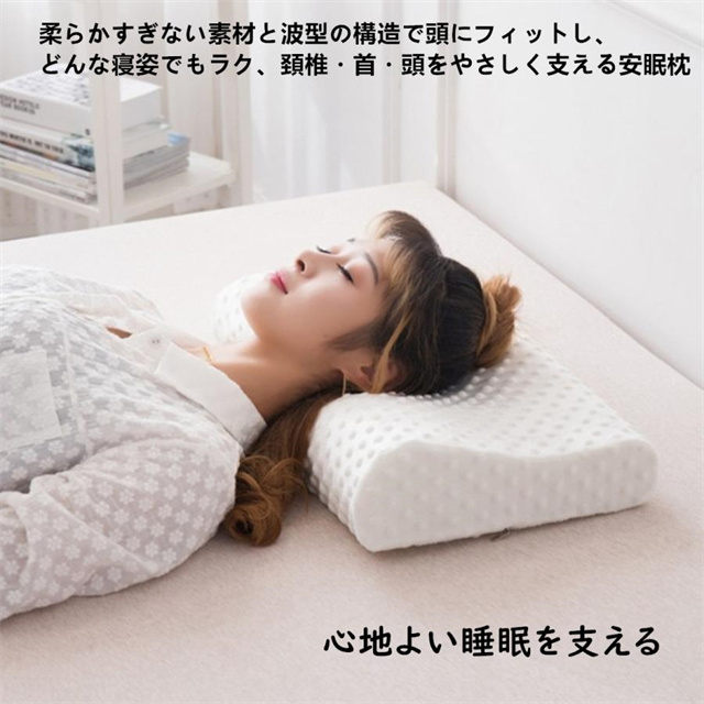 →どんな寝姿でもラク、頚椎・首・頭をやさしく支える安眠枕