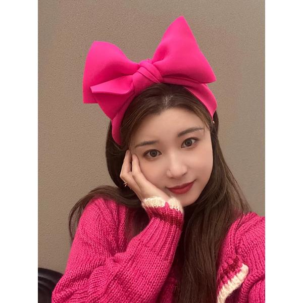 Himeikang-ピンクのリボンが付いた女性用のピンクのヘッドバンド,女の子用の大きな髪の長いベゼル,ヘアアクセサリー