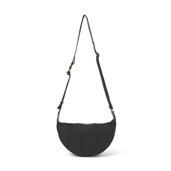 弱撥水性のあるカジュアルなナイロン素材に金具のゴールド使いが女性らしいボディバッグ。