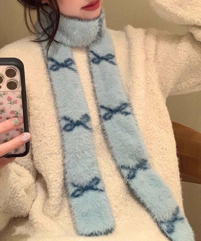【Jasmine】シャギーニットバイカラーリボン柄ストール