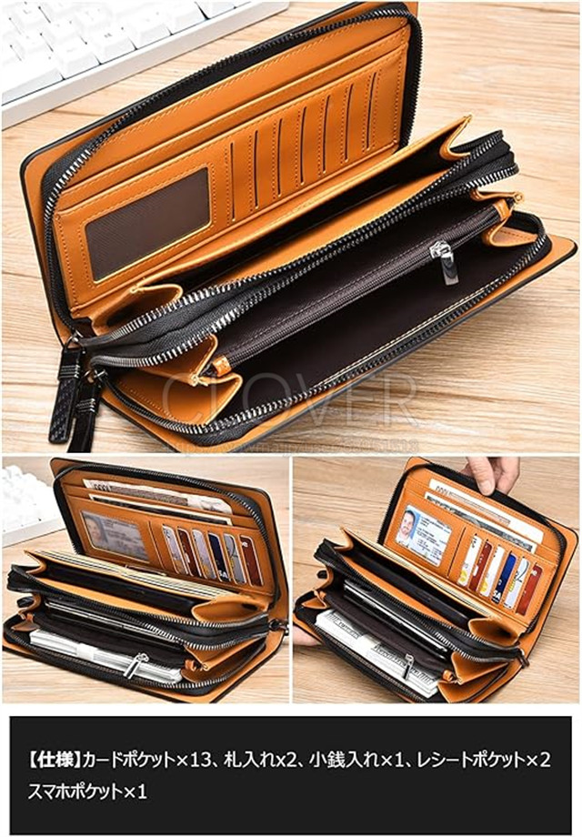 3、【仕様】カードポケット×13、札入れx2、小銭入れ×1、レシートポケット ×2 スマホポケット×1