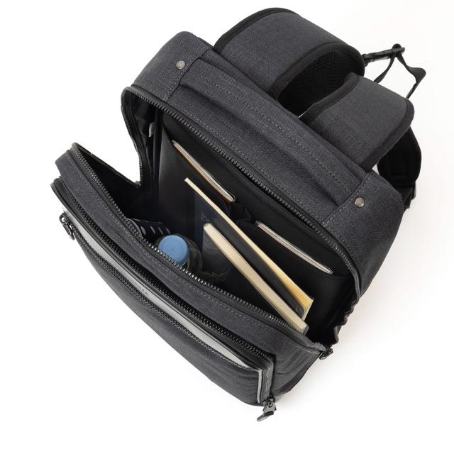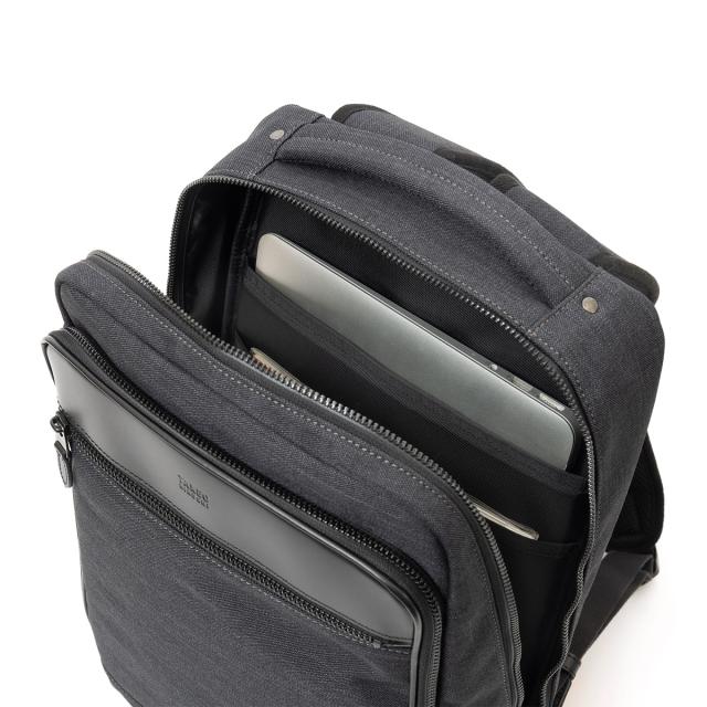 タケオキクチのカジュアルの中に大人なデザインを感じさせるビジカジリュック。本体素材は杢調ポリエステルを使用し上品な雰囲気になっています。また内装ポケットも豊富で普段使いから旅行まで幅広く活躍するバッグです。