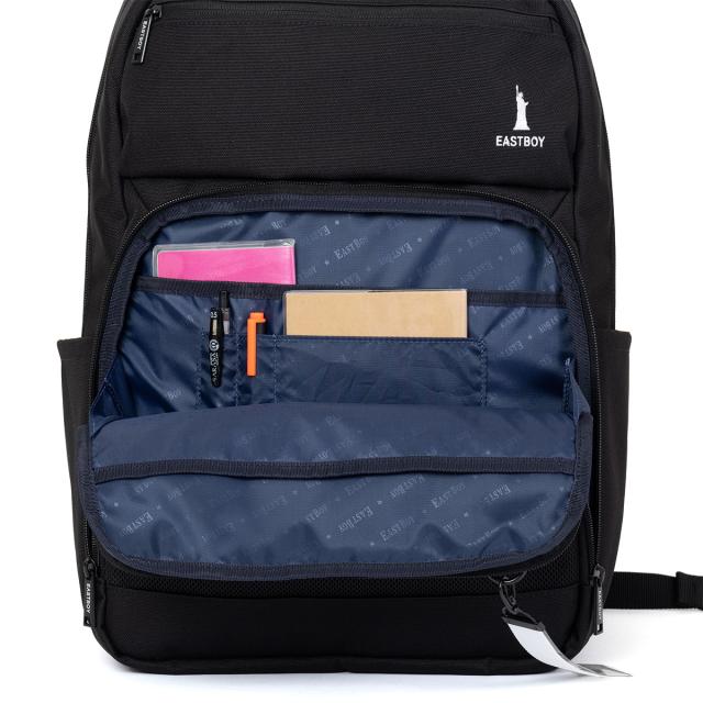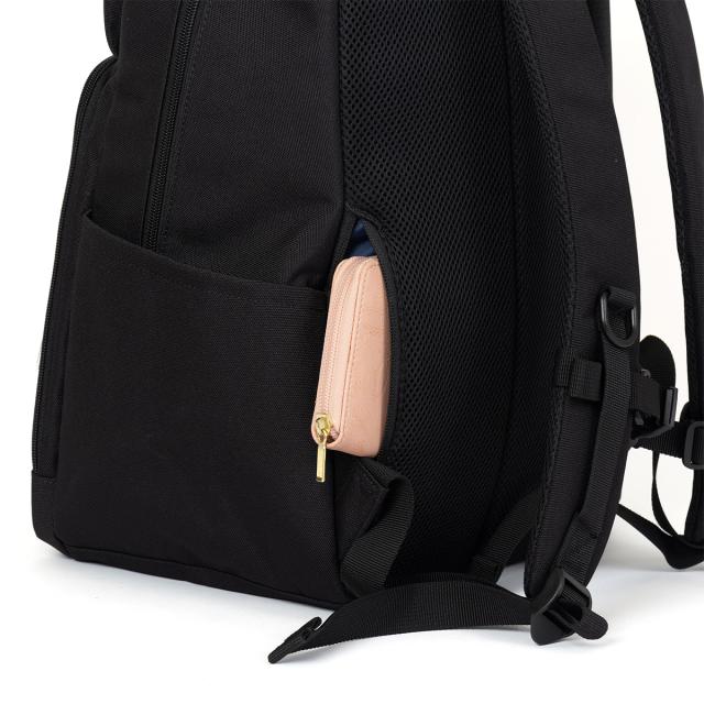 使いやすい大容量サイズで、しっかりとした生地感ながら軽さもあり、豊富なポケットも装備。フロントのメッシュポケットと内部ポケットは小物の収納に便利です。