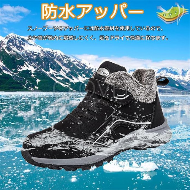 このスノーブーツのアッパーは特別の防水加工が施されていた生地を採用して、水が浸入しにくいですが、どうかご注意をお願い致します,雨や雪の日に長期間着用したら、水が浸入する可能性があります。