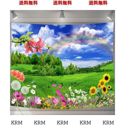 ◆商品名:U-SITU タペストリー 壁掛け 壁飾り 野原 花 虹 自然景色 オシャレ 背景 多機能 布ポスター インテリア 雰囲気転換(サイズ:長さ180cm x