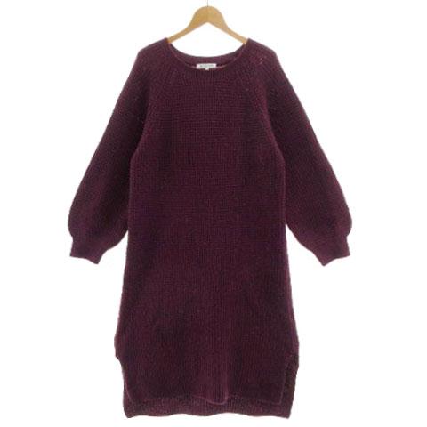 【中古】グローバルワーク GLOBAL WORK ワンピース ニットワンピース パフスリーブ ロング丈 ウール混 パープル 紫 L