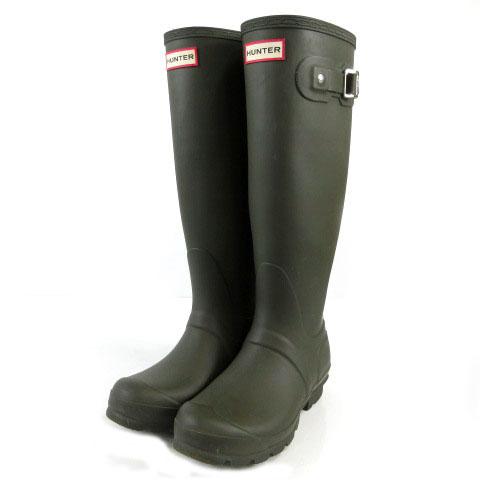 【中古】ハンター HUNTER トール レイン ブーツ 長靴 雨靴 ロゴ カーキ UK3 レディース