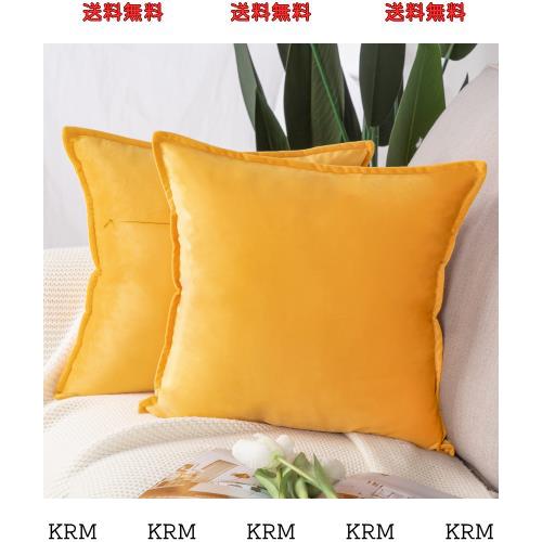 Madizz クッションカバー 2枚セット 北欧 柔らかい ビロード無地 背当て 装飾 枕カバー 座布団カバー ソファ用 寝室用 65*65 CM マスタードイエロー