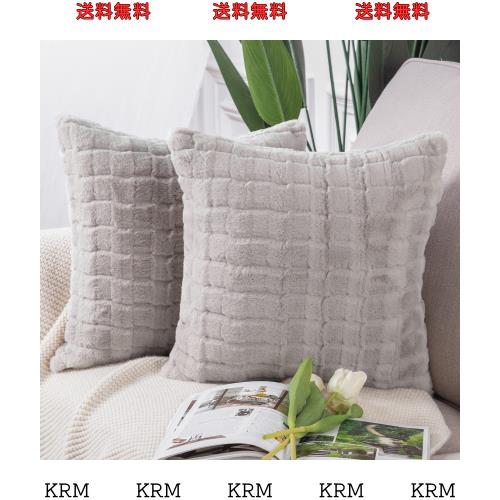 Madizz クッションカバー 2枚セット 柔らかい ぬいぐるみ ショートウール ベルベット 装飾的な 枕カバー 贅沢 スタイル クッションケース ソファ用 寝室用 55*55 cm ライトグレー