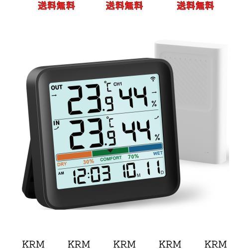 【リッチでわかりやすいデザイン】屋内外温湿度計、空気快適性インジケーター付き(3色)、12/24時間計、月-日表示、温度と湿度の矢印トレンド、低バッテリーアイコン、℃/?切替機能。