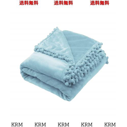 Mokoya 毛布 セミダブル 可愛い ブランケット 150x200cm かわいいポンポン付き ふわふわ柔らかい 多用途 タオルケット 軽量 洗える 通年
