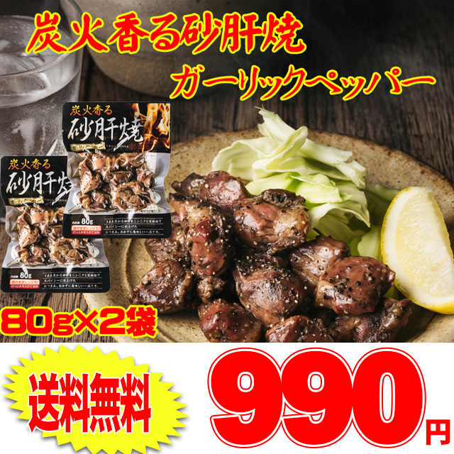 炭火香る 砂肝 焼 ガーリック ペッパー 80g×2袋 砂肝焼 ガーリックペッパー メール便 pre