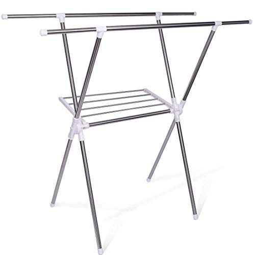 高耐荷重 洗濯物干しスタンド 室内 屋外 ベランダ用 - DURA DRY ステンレス製 防錆 耐荷重60KG X型タイプ 幅940~1460×