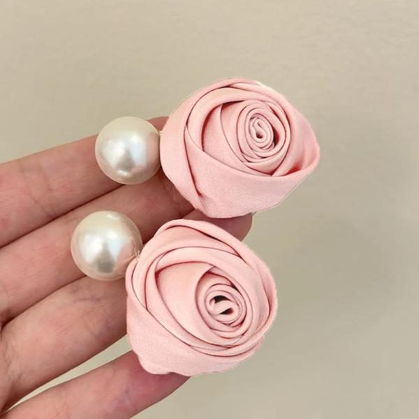 サテンとピンクのビーズのヘアクリップ,ヘアアクセサリー,サイドクリップ,トレンディなバラの形