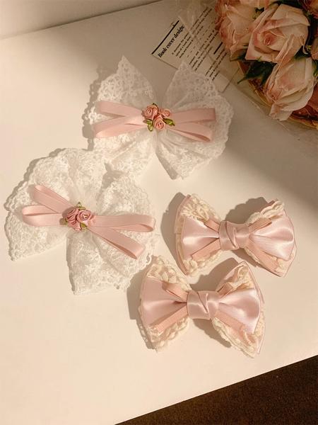 ロリータヘアアクセサリー,ピンク,クリーム,ピーチ,レース,ヘアピン